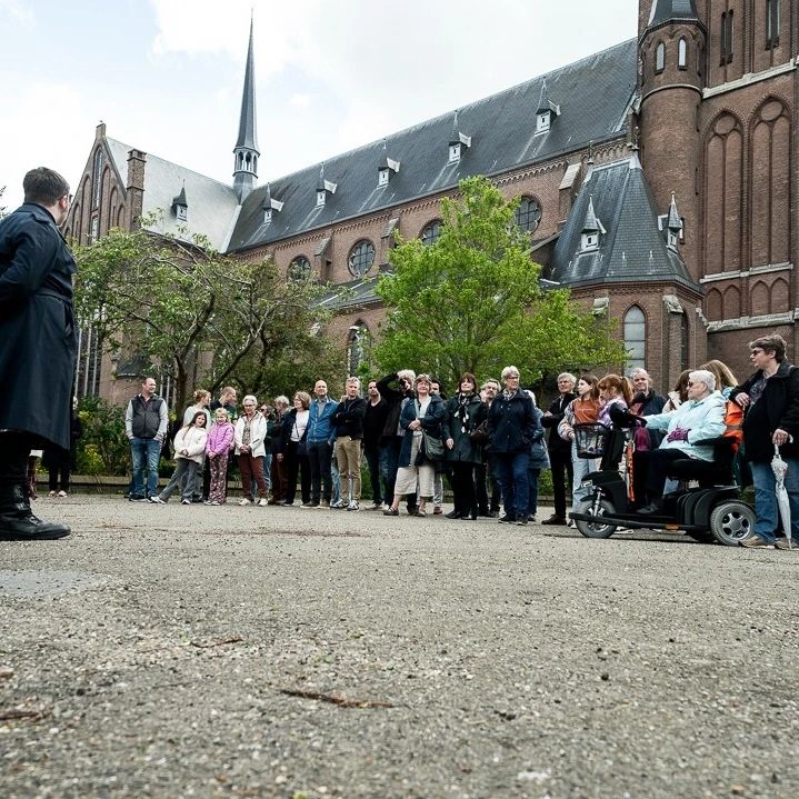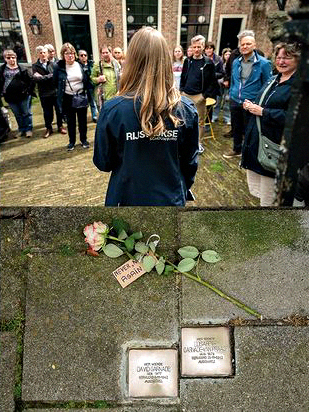 Het theaterpubliek werd eerst langs een woonhuis met struikelstenen geleid. Het theatergezelschap legde uit hoe de mensen achter deze stenen om het leven zijn gebracht in het concentratiekamp Auschwitz. De route werd voortgezet langs huizen waar meerdere Joodse gezinnen woonden. Daarbij werd ook verteld over hoe een broer van iemand het leger in gedwongen werd.